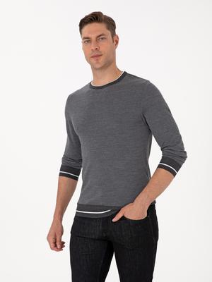 - Açık Gri Melanj Slim Fit Bisiklet Yaka Yün Karışımlı Triko Kazak