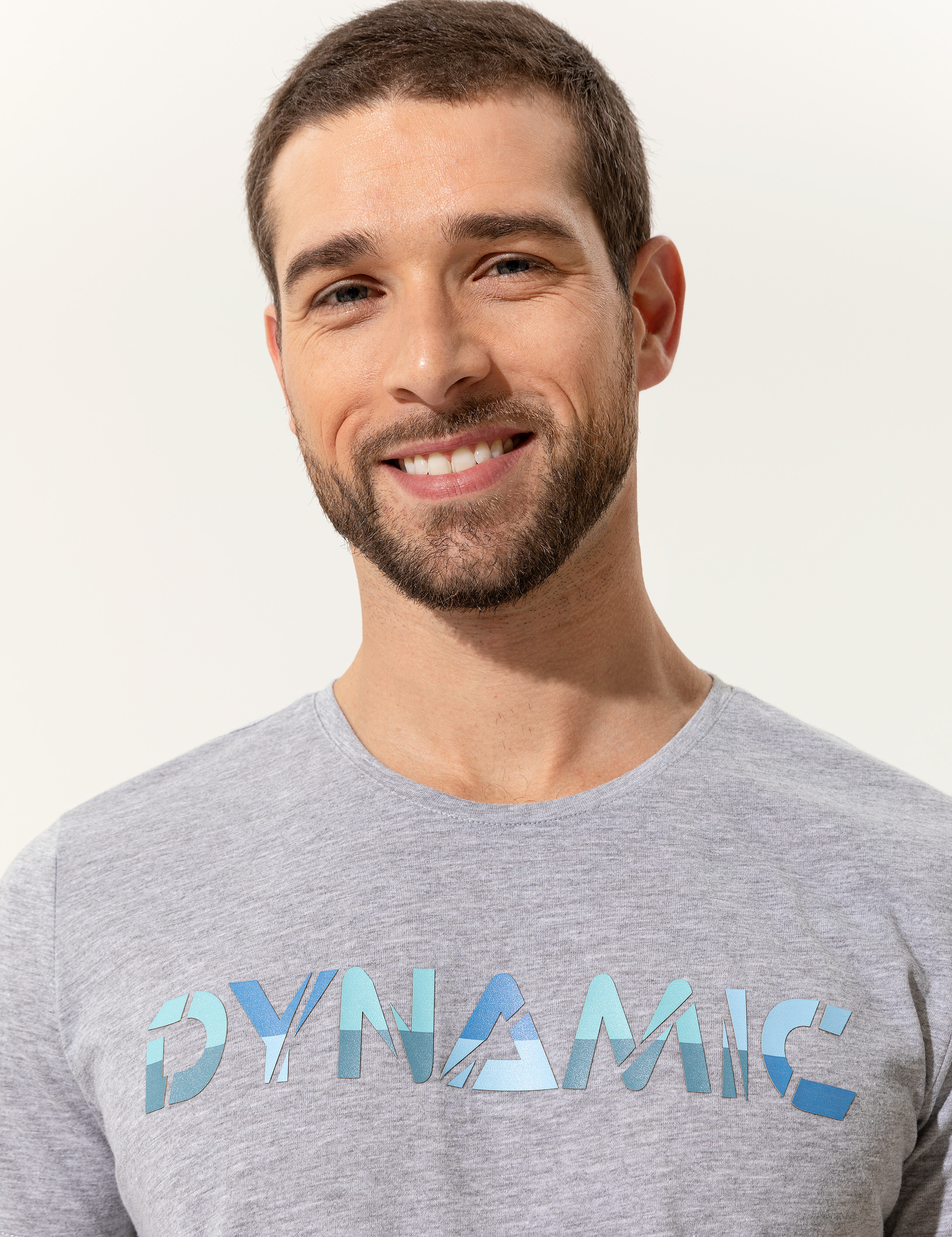 Açık Gri Melanj Slim Fit Baskılı Bisiklet Yaka Tişört