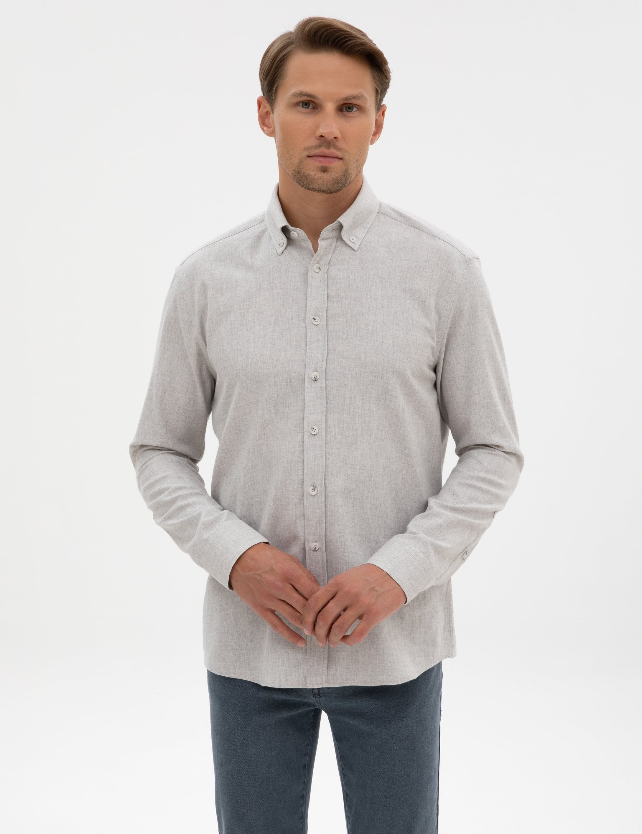 Açık Gri Regular Fit Uzun Kollu Gömlek