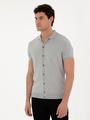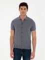 Açık Gri Slim Fit Düğmeli Polo Yaka Keten Karışımlı Triko Tişört