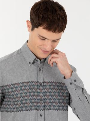 Açık Gri Slim Fit Uzun Kollu Gömlek