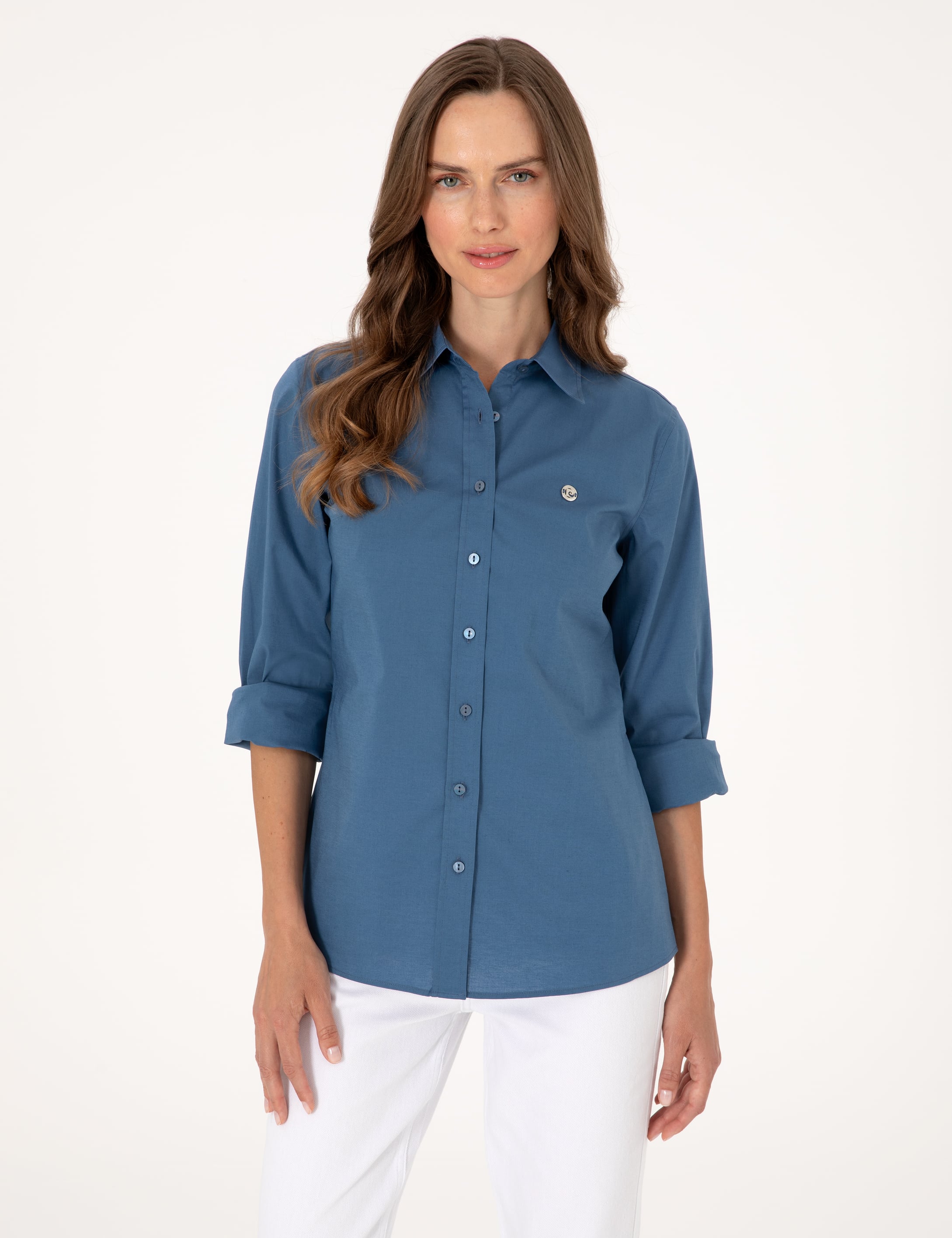 Açık İndigo Slim Fit Uzun Kollu Gömlek