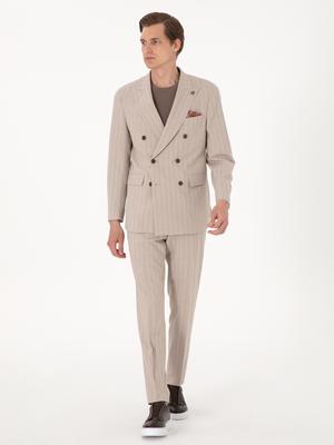 - Açık Kahverengi Ex. Slim Fit Çizgili Kruvaze Takım Elbise