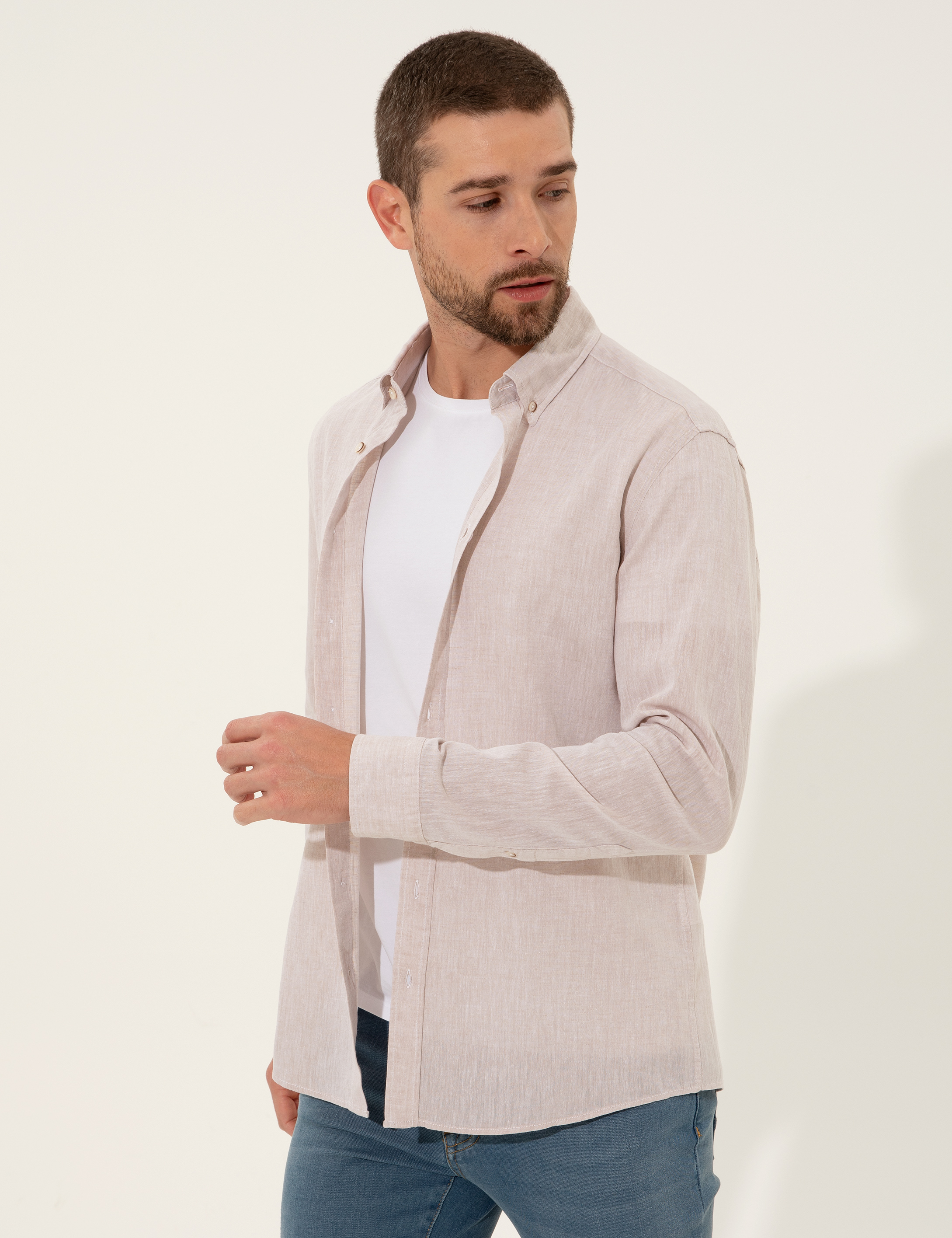 Açık Kahverengi Regular Fit Uzun Kollu Gömlek