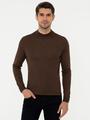 Açık Kahverengi Slim Fit Çeyrek Yaka Yün Karışımlı Basic Triko Kazak