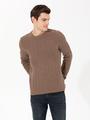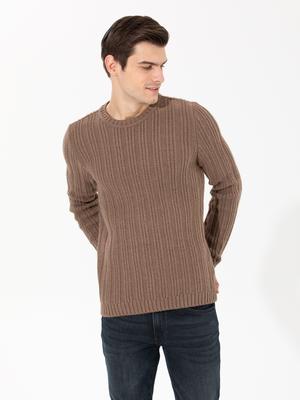 - Açık Kahverengi Slim Fit Bisiklet Yaka Triko Kazak