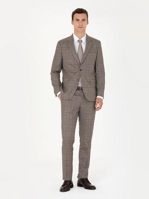 - Açık Kahverengi Slim Fit Ekose Takım Elbise
