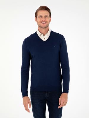 - Açık Lacivert Slim Fit V Yaka Basic Triko Kazak