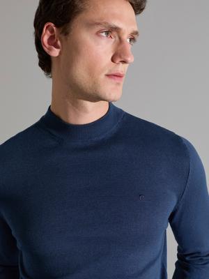 Açık Lacivert Slim Fit Çeyrek Yaka Basic Triko Kazak