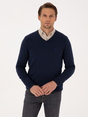 Açık Lacivert Slim Fit V Yaka Basic Triko Kazak