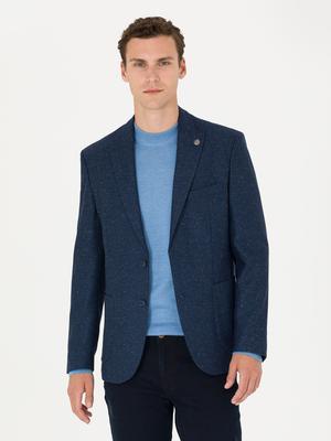 Açık Lacivert Yün Karışımlı Slim Fit Ceket