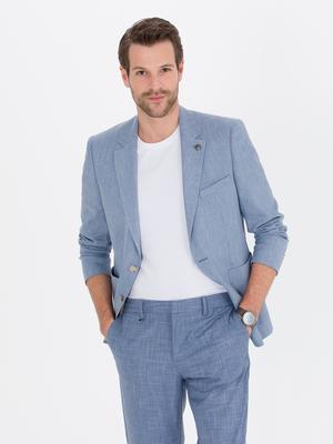 Açık Mavi Ex. Slim Fit Keten Karışımlı Ceket