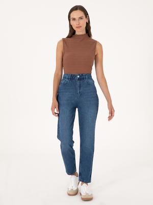 Açık Mavi Mom High Waist Fit Jean Pantolon