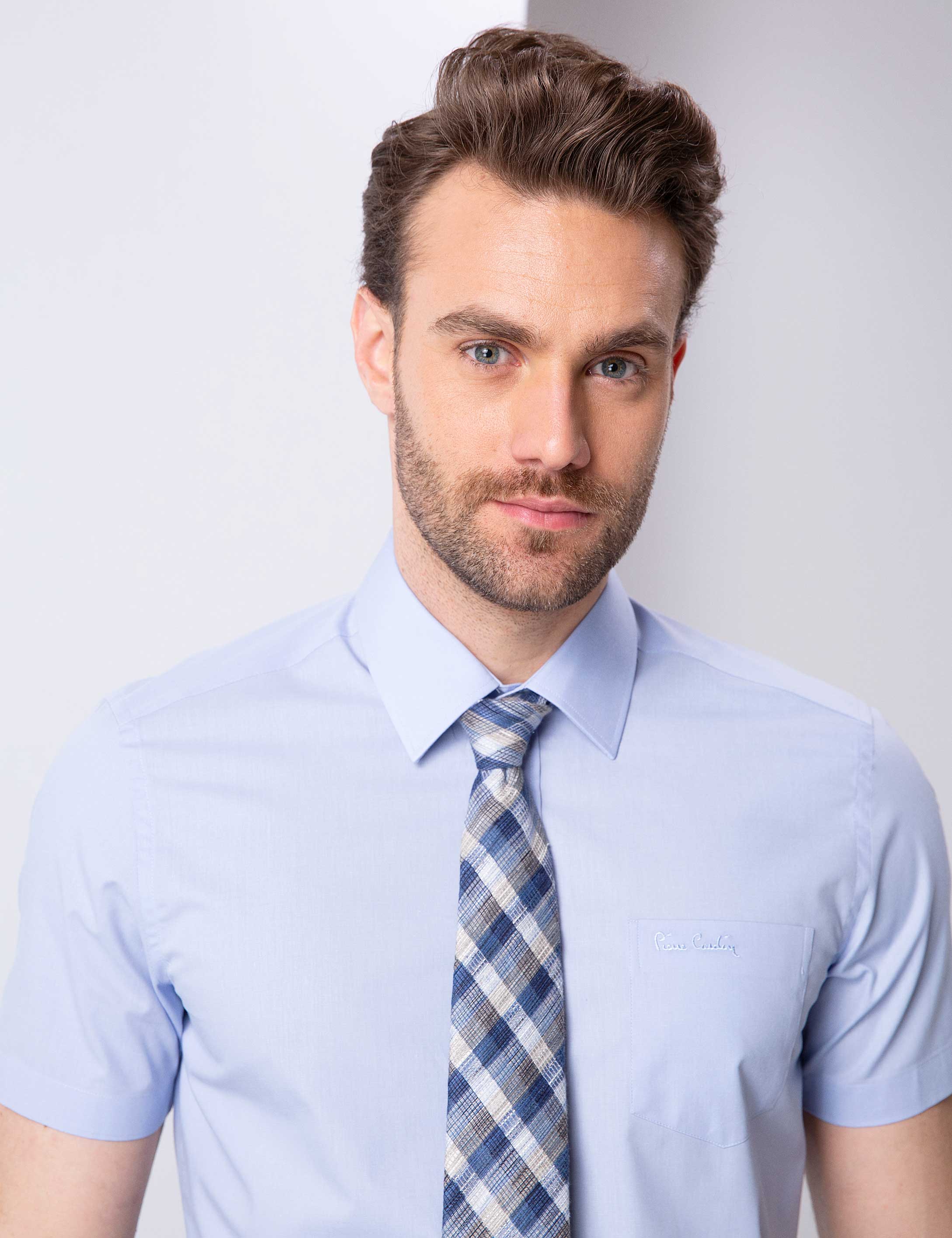 Açık Mavi Regular Fit Basic Kısa Kollu Gömlek
