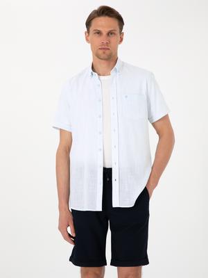 Buz mavisinin ferahlatıcı etkisini taşıyan bu kısa kollu gömlek, Pierre Cardin’in yaz stiline getirdiği sade ve şık yorumlardan biri. Keten görünümlü %100 pamuk kumaşıyla yumuşak bir dokuya sahip olan model, regular fit kesimi sayesinde hareket özgürlüğü sunar. Ön kısmındaki cep detayı casual şıklığa sportif bir hava katarken, açık rengi yaz kombinlerine taze bir dokunuş ekler.
