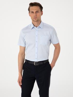 Açık Mavi Parlak Saten Regular Fit Kısa Kollu Basic Gömlek