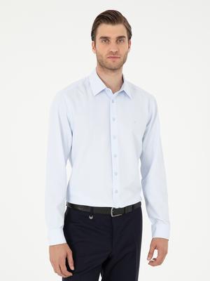 Açık Mavi Regular Fit Armürlü Uzun Kollu Gömlek