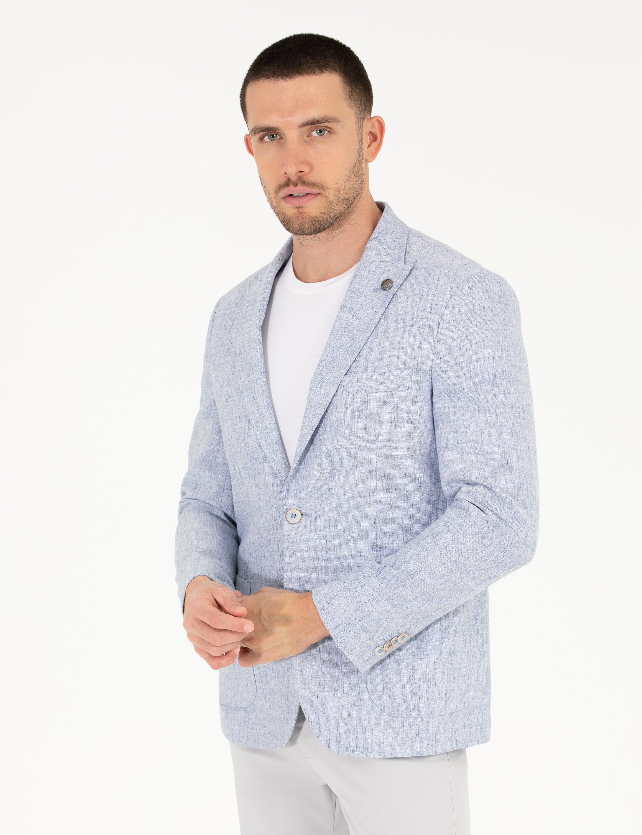 Açık Mavi Keten Karışımlı Spor Ceket