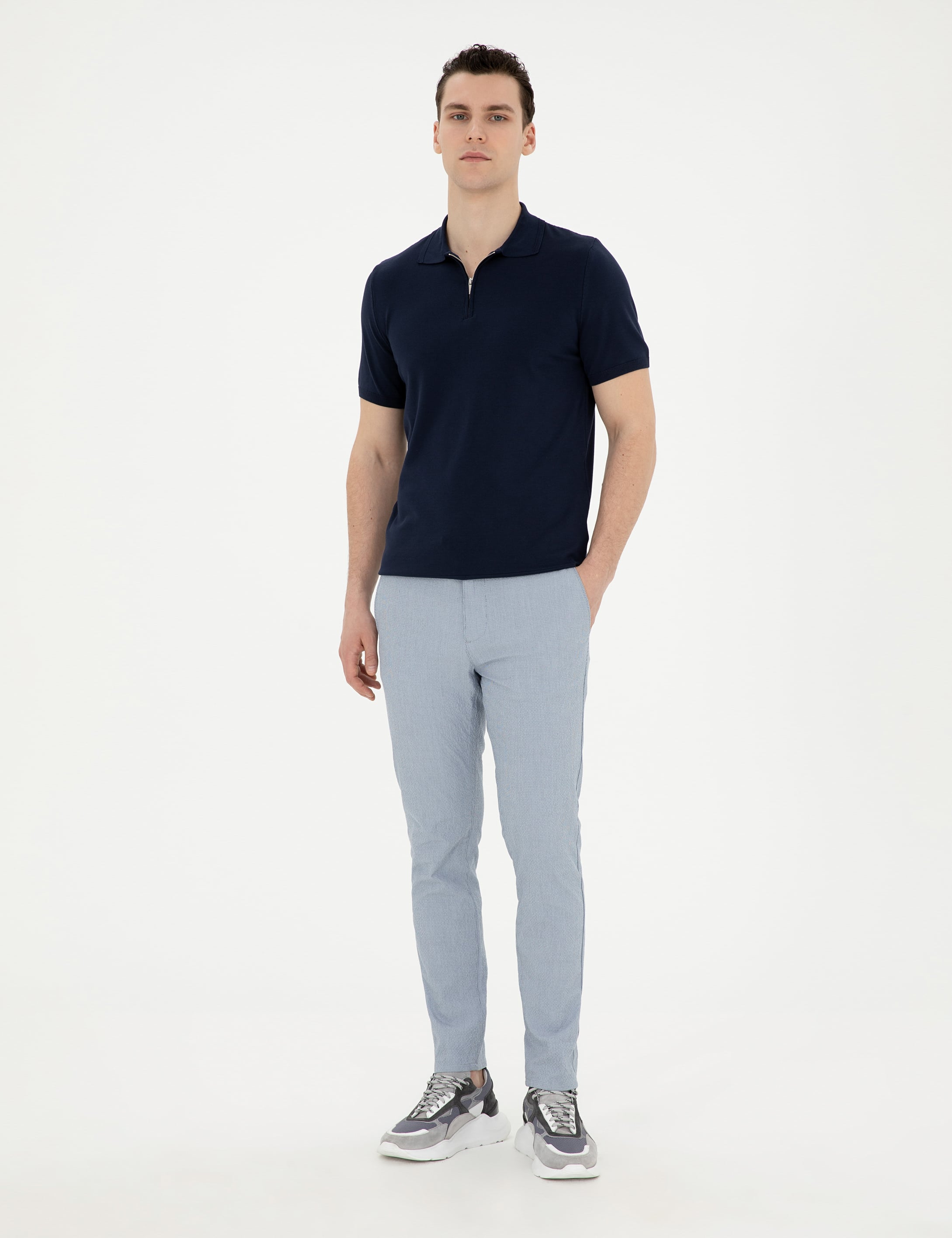 Açık Mavi Slim Fit Gofre Bağcıklı Kanvas Pantolon