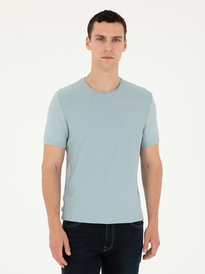 Açık Mavi Slim Fit Bisiklet Yaka Triko Tişört