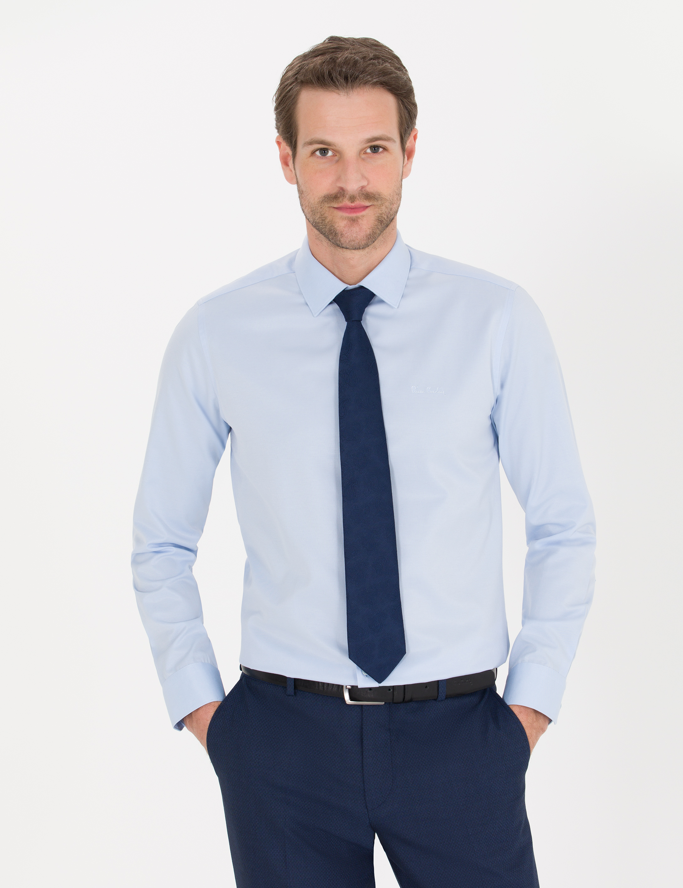 Açık Mavi Slim Fit Uzun Kollu Klasik Gömlek