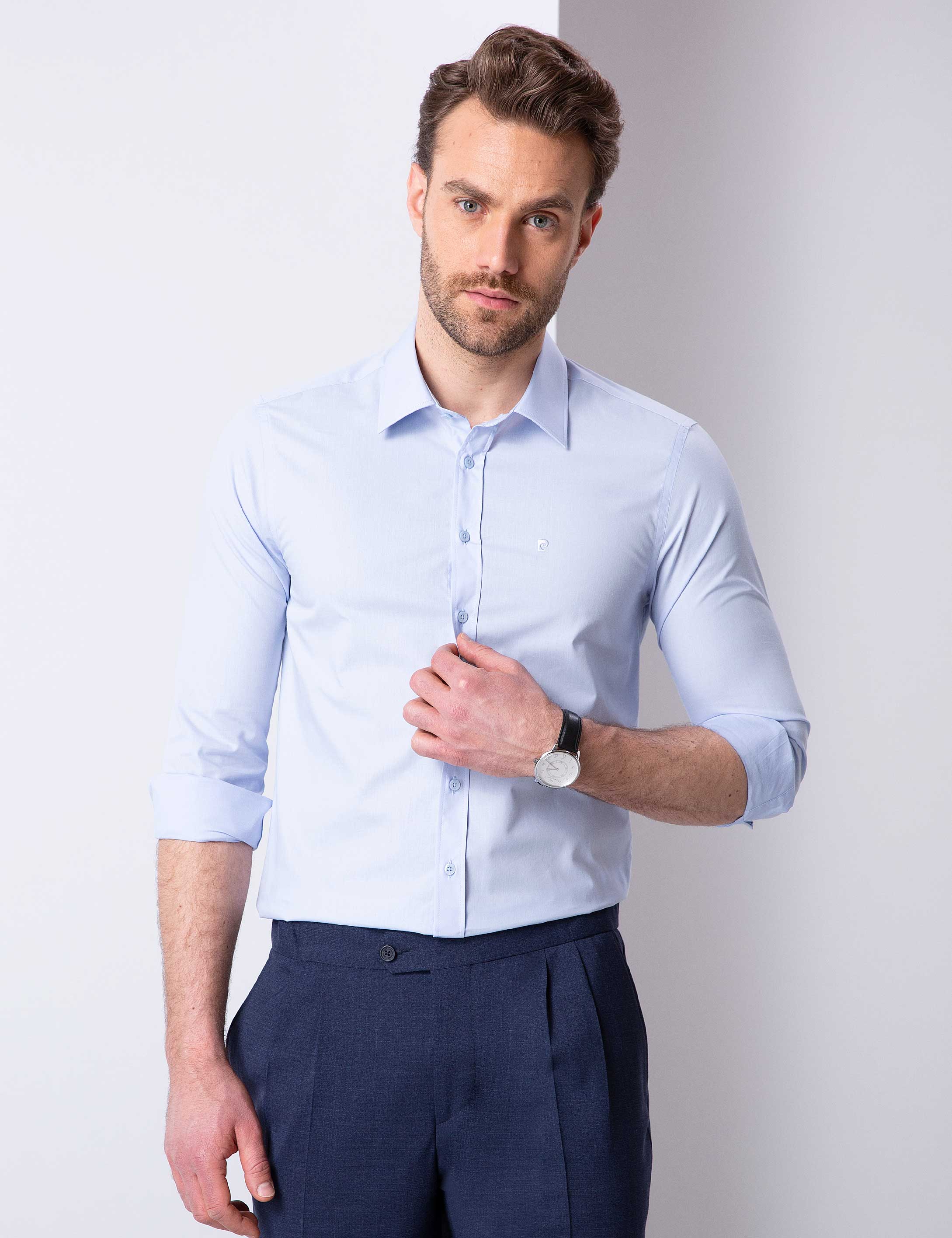 Açık Mavi Slim Fit Uzun Kollu Basic Gömlek