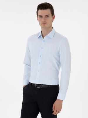 Açık Mavi İltalyan Yaka Armürlü Uzun Kollu Gömlek