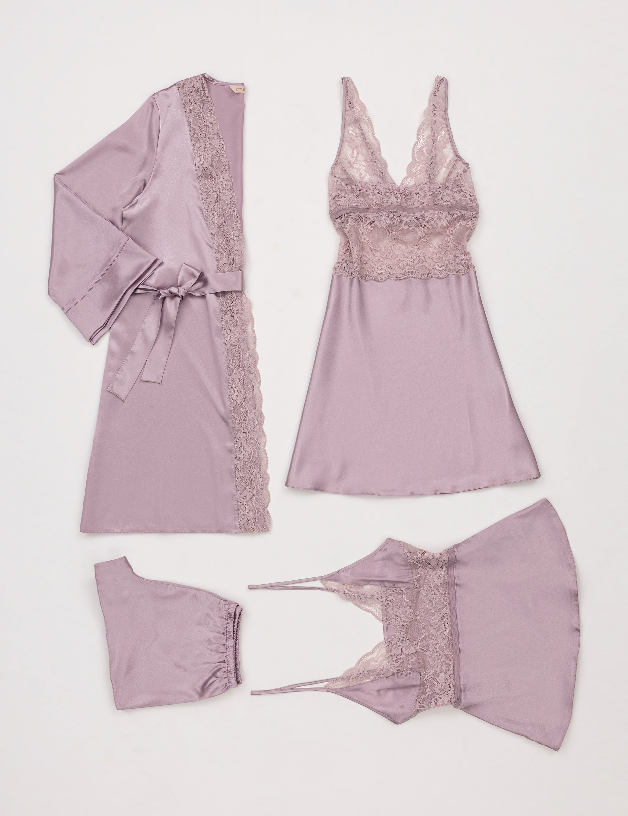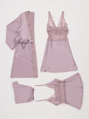 Açık Pembe Saten 4'lü Çeyiz Seti