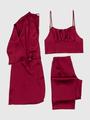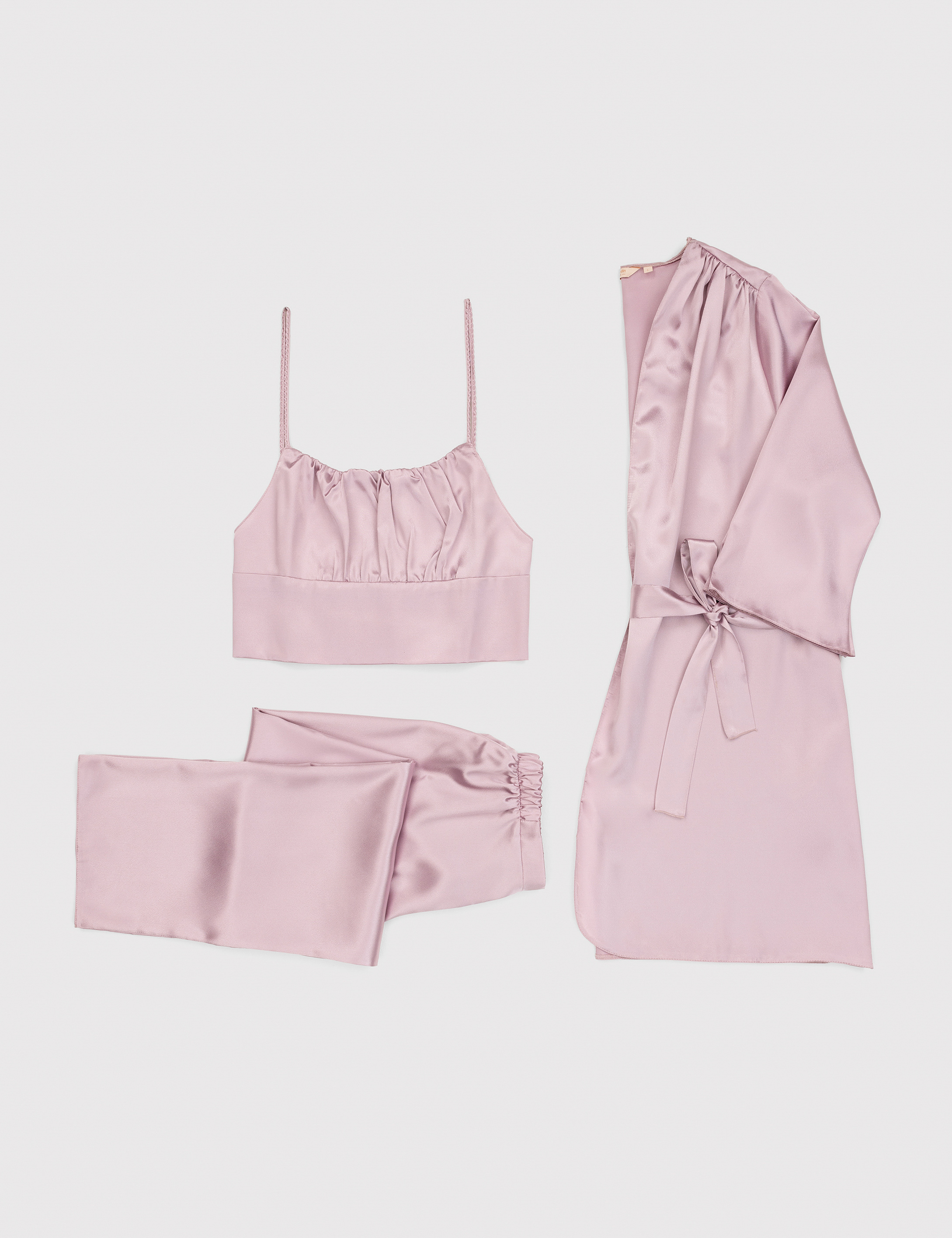 Açık Pembe Saten 3'lü Pijama Takımı