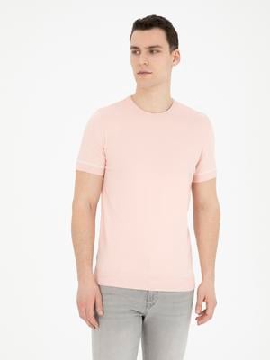 Açık Pembe Slim Fit Bisiklet Yaka Triko Tişört