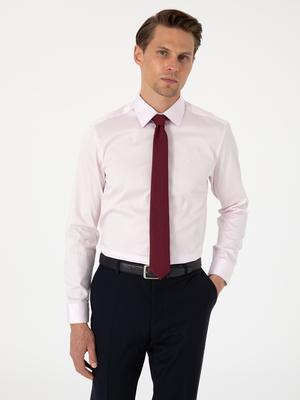 Açık Pembe Parlak Saten Slim Fit Uzun Kollu Basic Gömlek