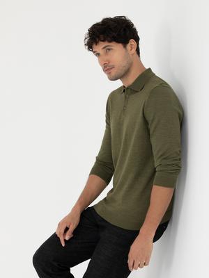 Açık Yeşil Regular Fit Polo Yaka Yün Karışımlı Basic Triko Kazak