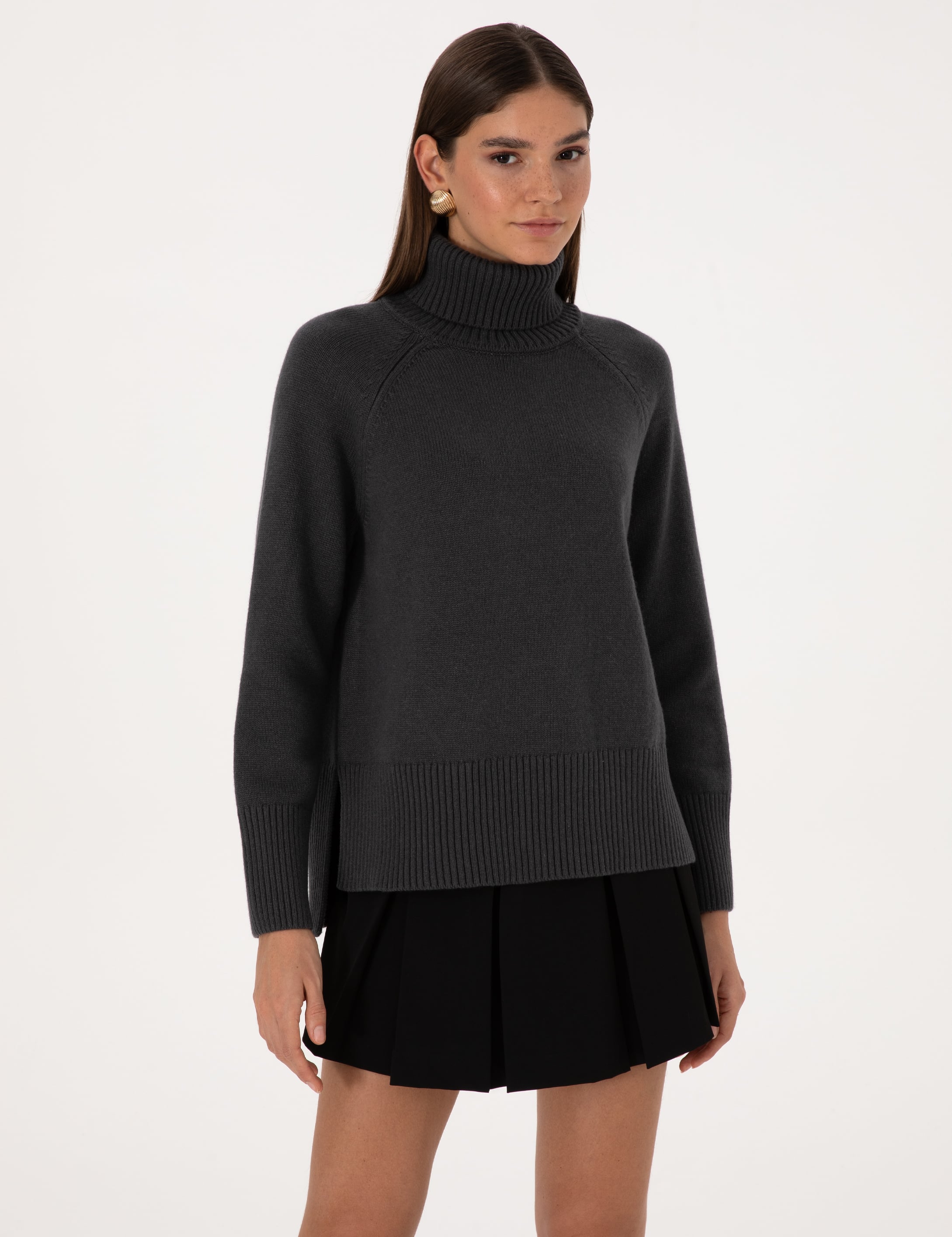 - Antrasit Comfort Fit Yün Karışımlı Balıkçı Yaka Kazak