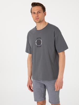 Antrasit Comfort Fit Bisiklet Yaka Tişört