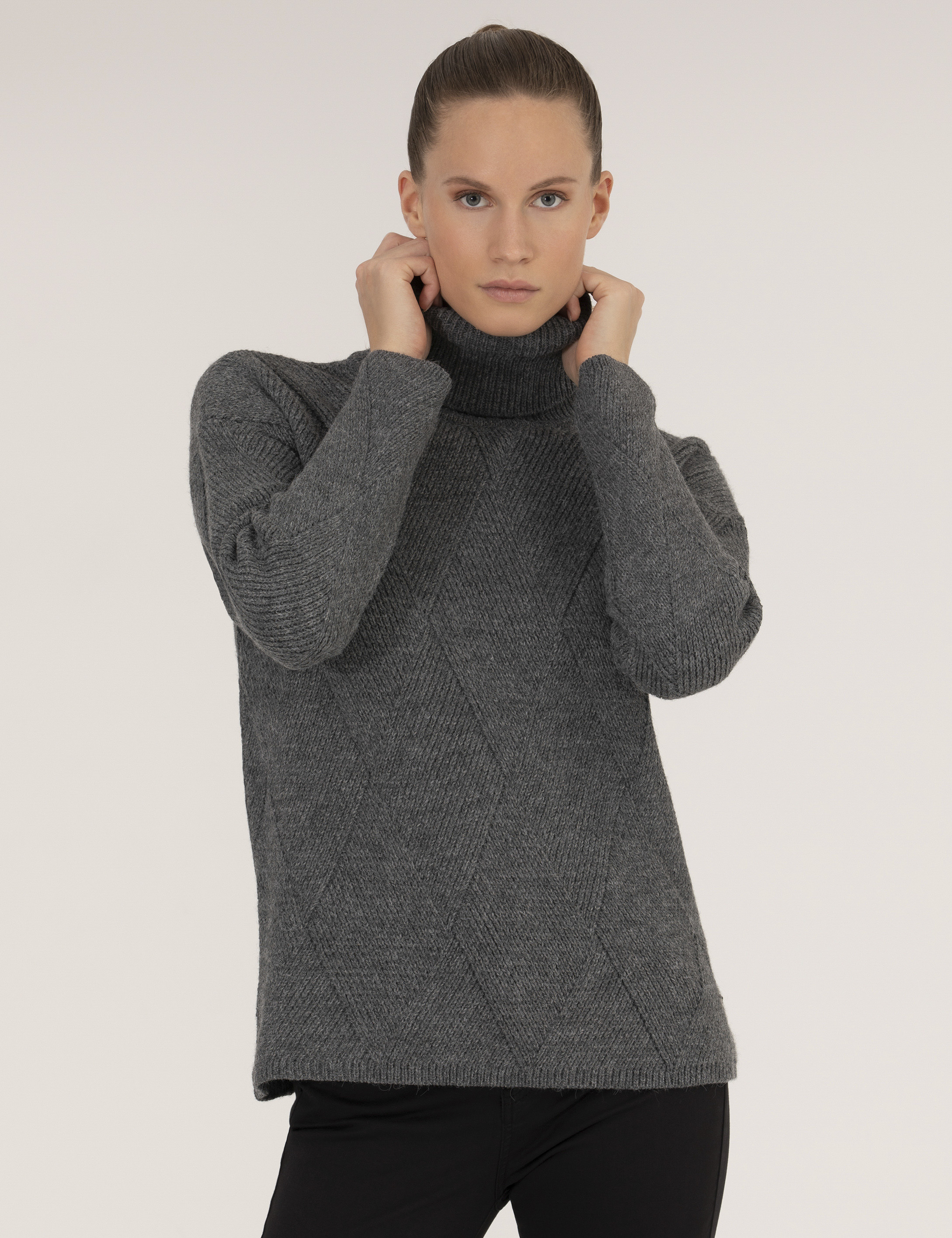 - Antrasit Melanj Regular Fit Balıkçı Yaka Kazak