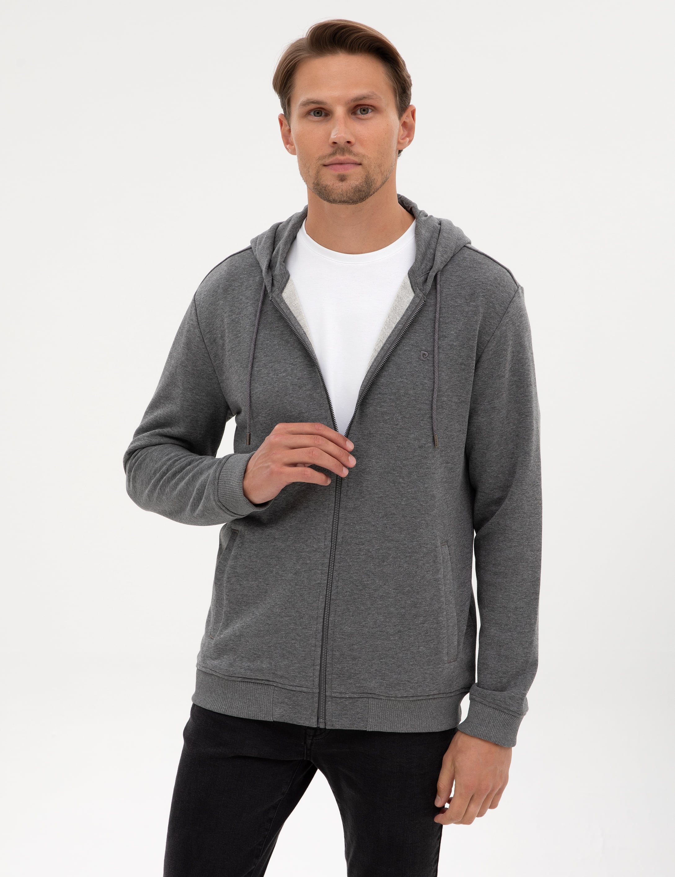 Melanj antrasit kapüşonlu hırka, kapüşon detayı ile baş ve boyun çevresini sararak koruma sağlarken, tam fermuarlı tasarım pratik giyim olanağı sunar. Yan cepler günlük kullanımda işlevsellik kazandırır. Antrasit tonu, şehir stiline modern bir karakter katar. Online satışa özel olarak hazırlanmıştır.