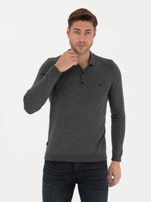 - Antrasit Melanj Slim Fit Polo Yaka Basic Triko Kazak