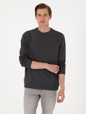 Antrasit 2 İplik Regular Fit Bisiklet Yaka Basic Sweatshirt