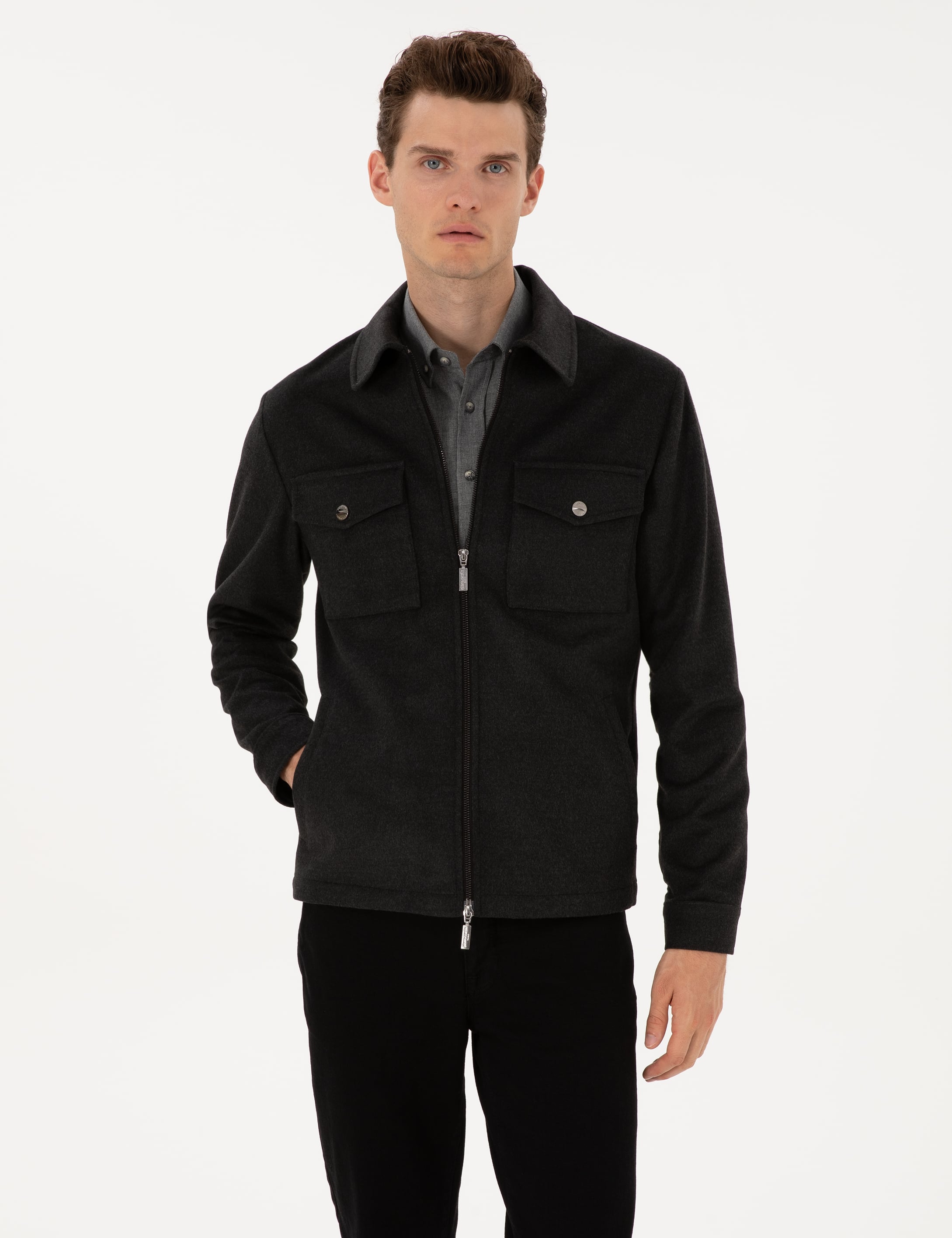 Antrasit Regular Fit Fermuarlı Ceket