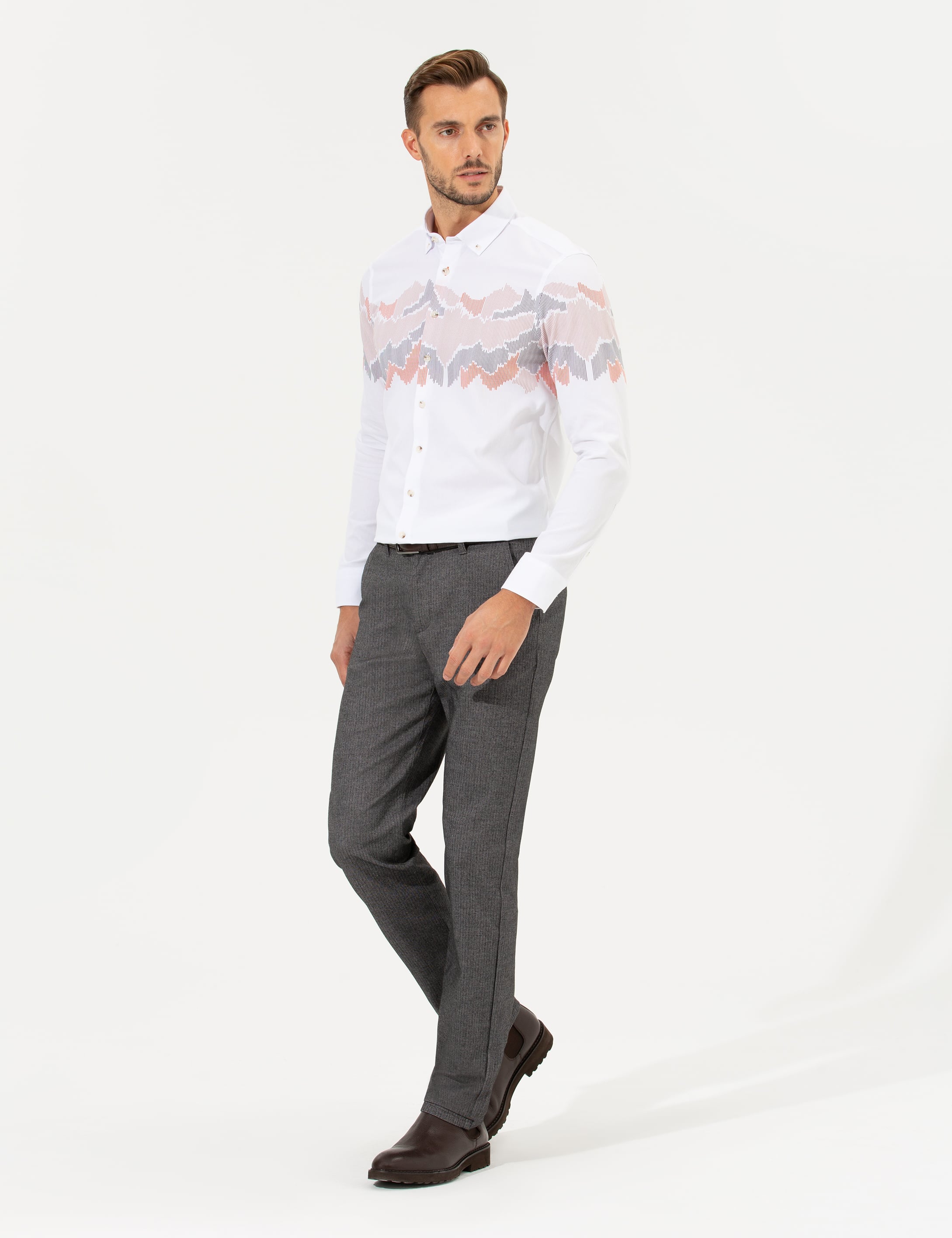 Antrasit Regular Fit Çizgili Kanvas Pantolon