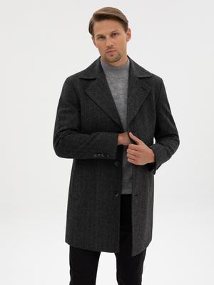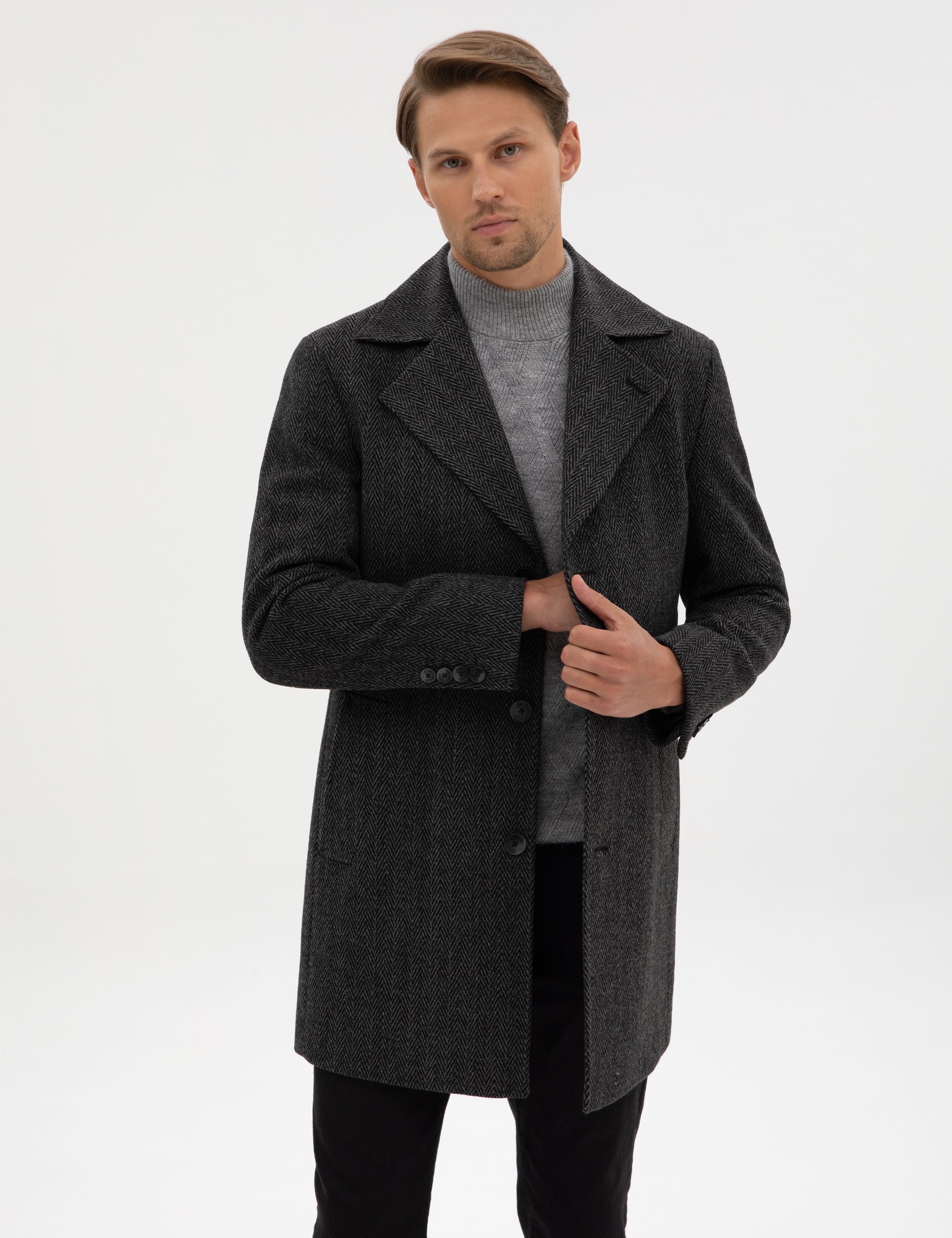 Antrasit Yün Karışımlı Balıksırtı Palto