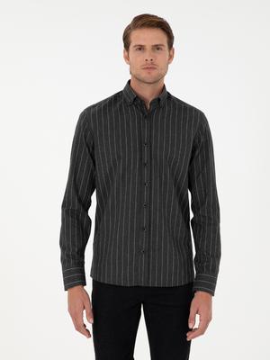 Antrasit Regular Fit Çizgili Uzun Kollu Gömlek