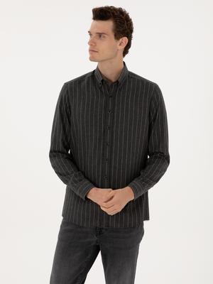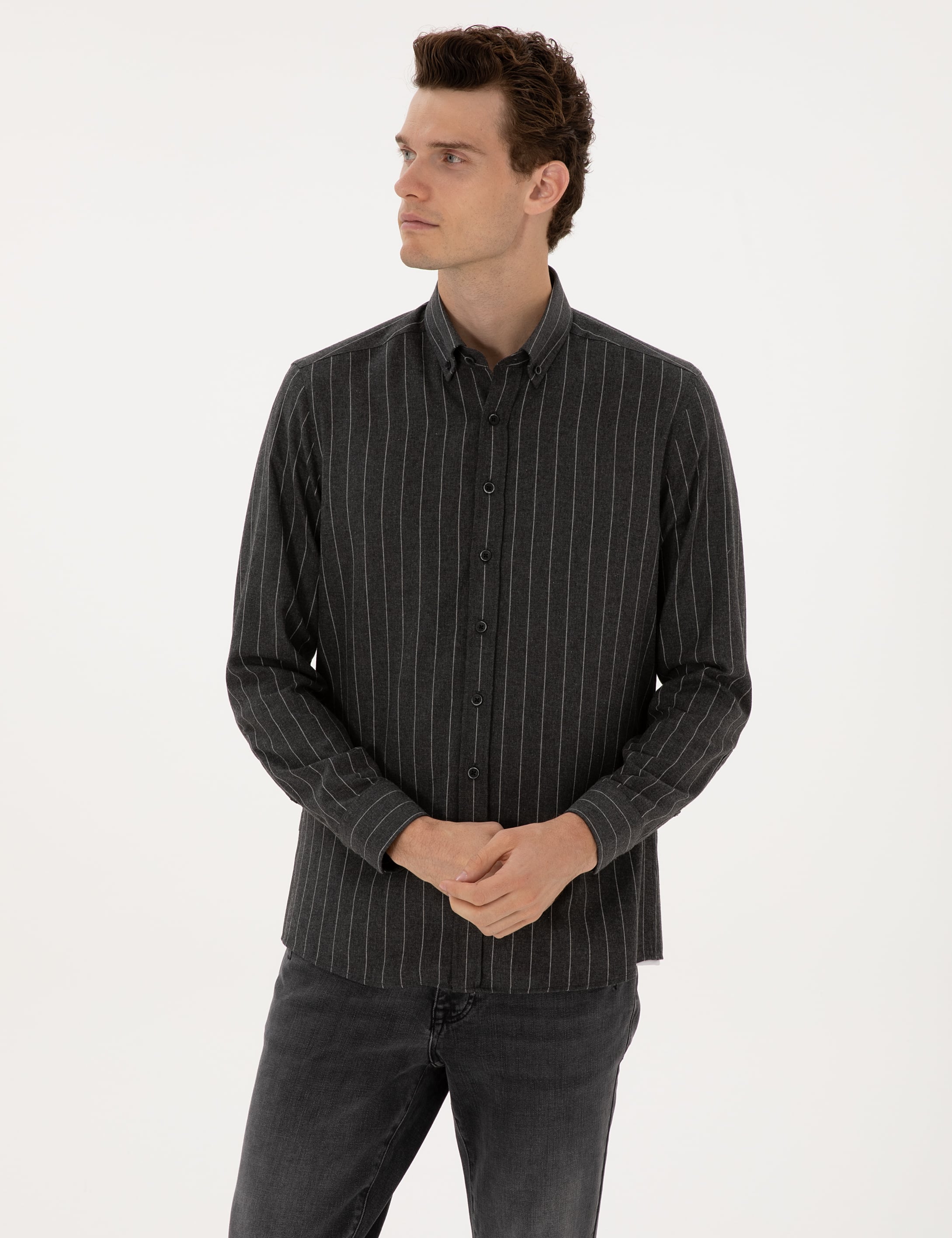 - Antrasit Çizgili Regular Fit Uzun Kollu Gömlek