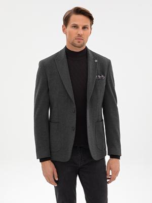 Antrasit Slim Fit Flanel Dokulu Ceket