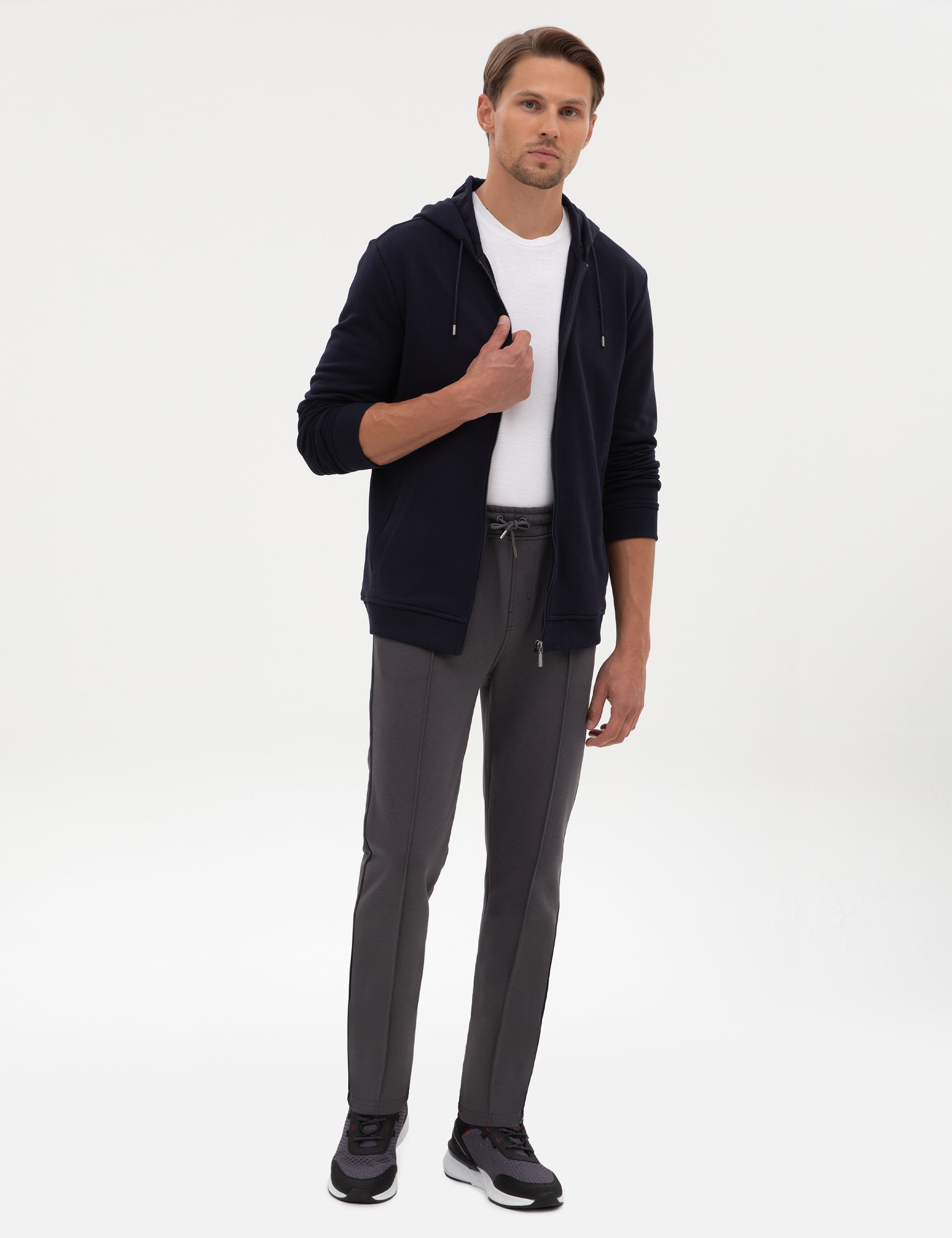 - Antrasit Slim Fit Nervürlü Düz Paça Eşofman Altı