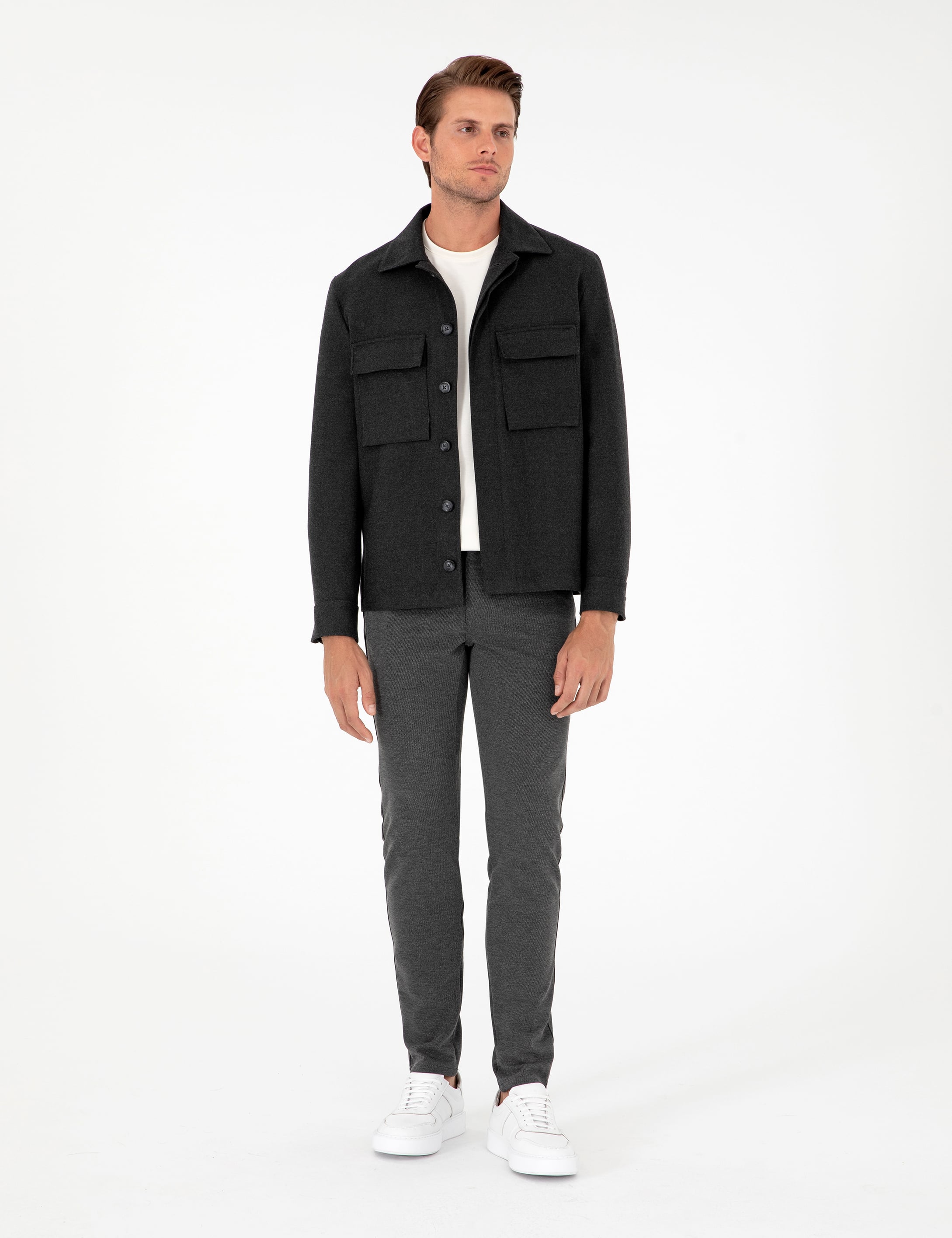 Antrasit Slim Fit Kanvas Pantolon