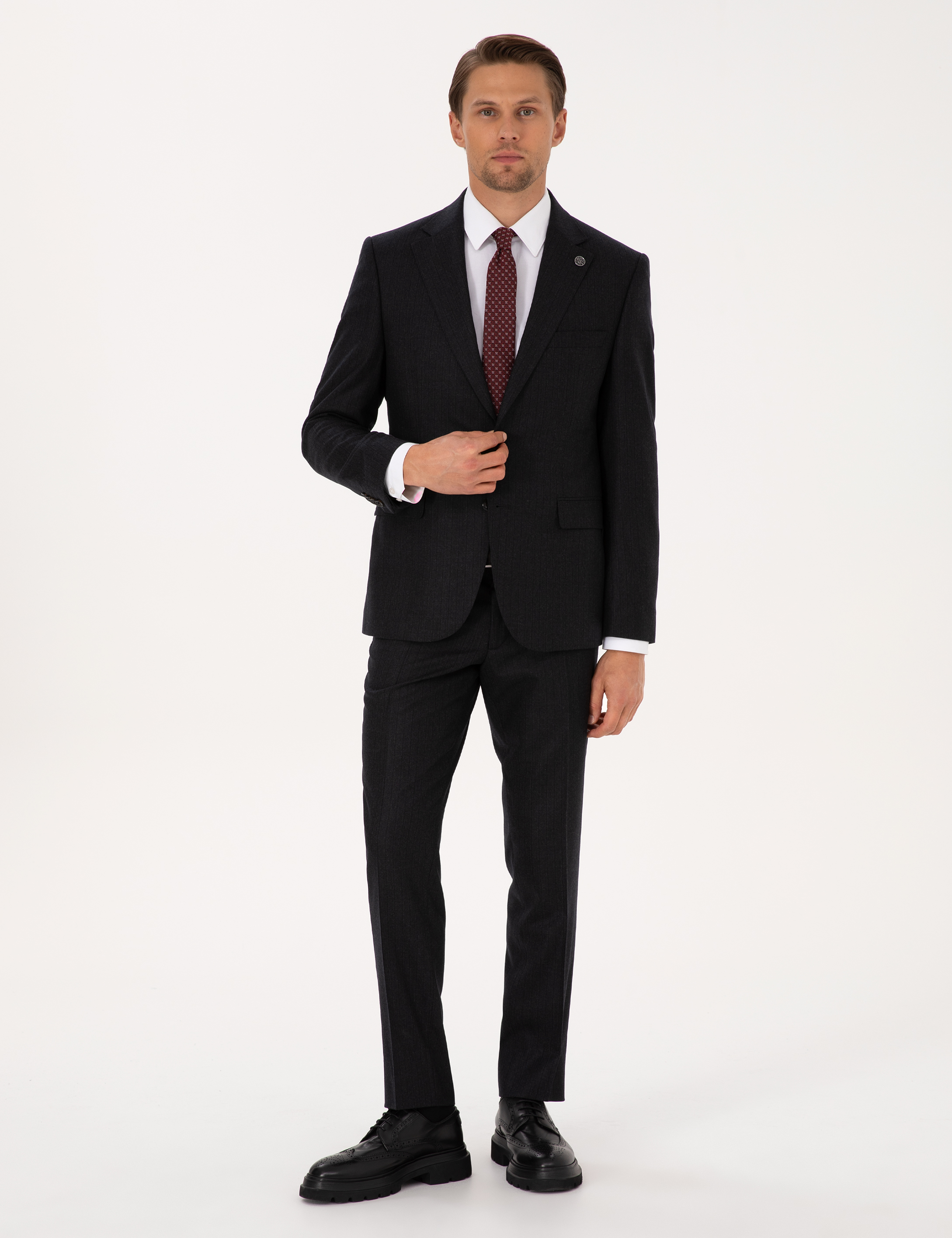- Antrasit Slim Fit %100 Yün Takım Elbise