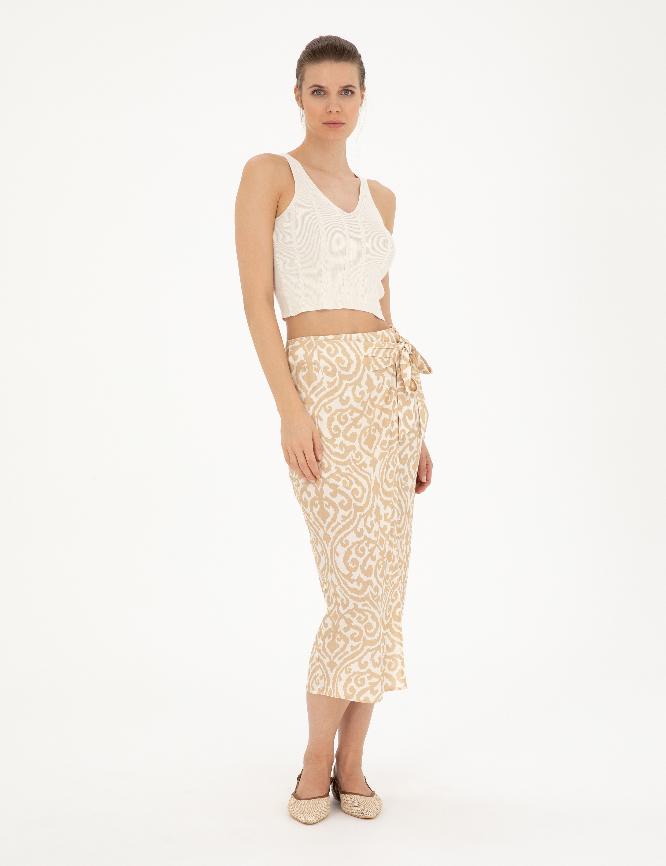 Bej A Kesim Dokuma Etek