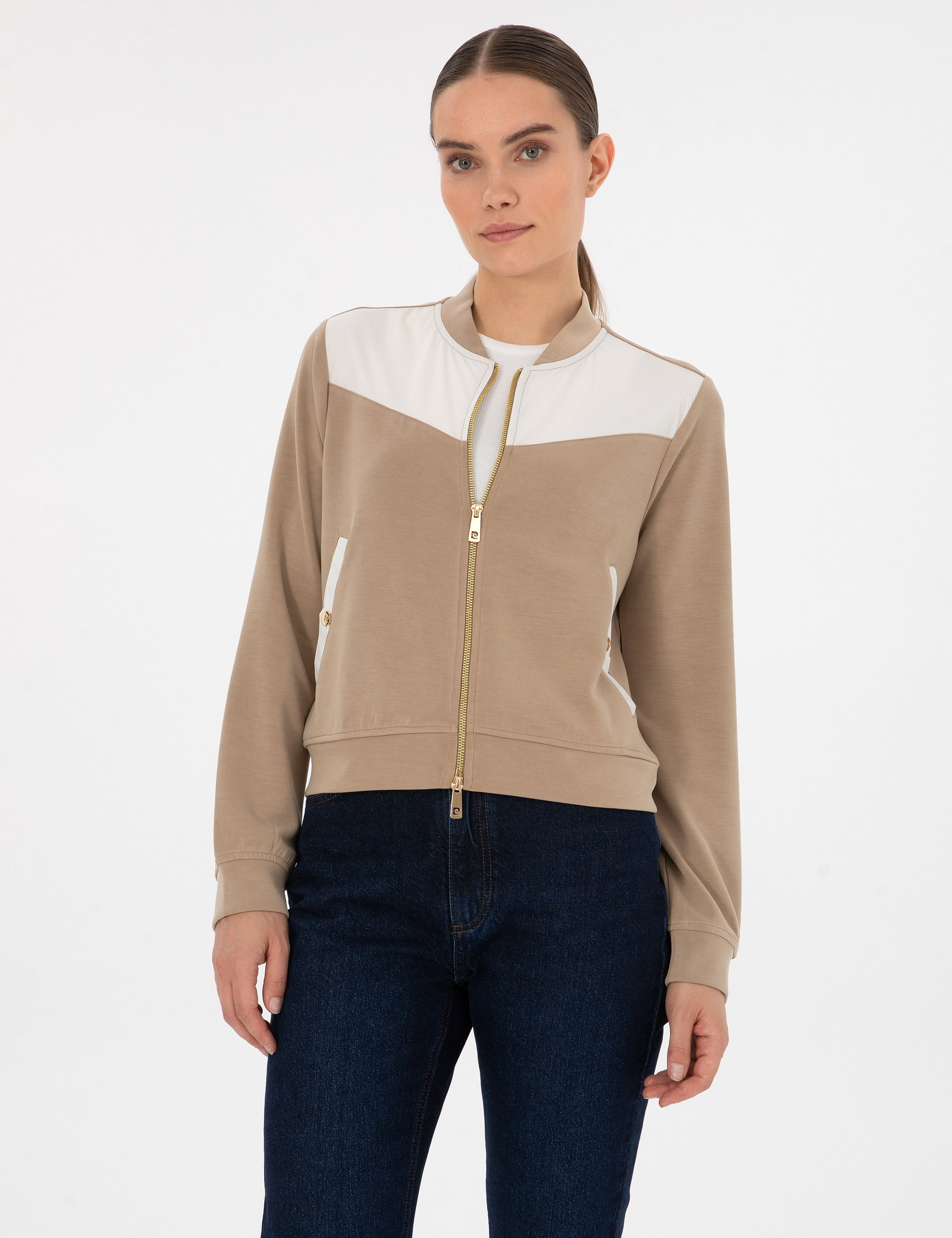 - Bej Oversize Modal Karışımlı Fermuarlı Sweatshirt