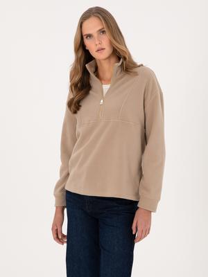 Bej Comfort Fit Fermuarlı Polar Sweatshirt